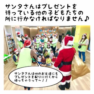 こんにちは🌞鶴見園では24日のクリスマスイブに子どもたちが楽しみに楽しみに待っていたクリスマス会を行いました!✨クリスマス会のメインイベントだったサンタさんの登場にはみんな大興奮🤩子どもたちはサンタさんから素敵なプレゼントをもらったようですよ~🎁そんなサンタさんと触れ合った様子を実写漫画にしました~♬最後まで是非見て下さいね😊