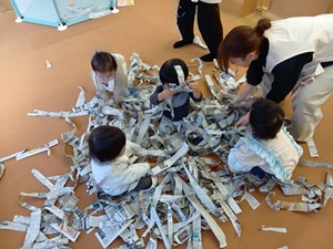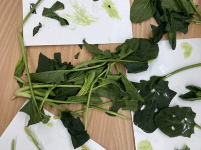 まずはほうれん草の絵本を読んで、実際に触ってみます! 最初のうちは、本当に触っていいのかな🤔といった様子でおそるおそる触っていましたが、 ちょっと舐めてみたり😂 葉の部分がやわらかいことに気づき、ちぎってぱらぱらぱら🍃 ぶどう組のメンバーはここから画用紙に貼っ ...