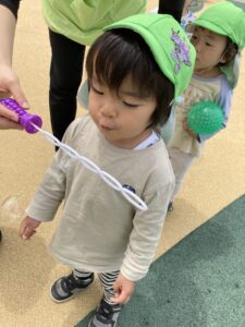みんな大好きシャボン玉。どんどん上手になって来ました。