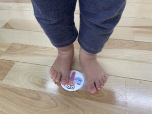 しっかり自分のマークの立ち位置に立つ姿、足元がとっても可愛いです💖