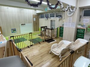 1番手前のお部屋は、主にいちごぐみさん(1歳児クラス)が過ごしているお部屋です🍓