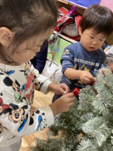 早速、ぶどうぐみさんがオーナメントの飾りつけをしてくれました💡