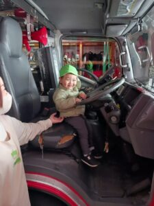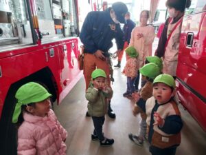 『これはなんですか?』としっかり質問をして消防士さんとお話していました💕