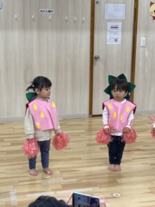 いちごの衣装で、『いちごサンタクロース』の体操をしました🍰