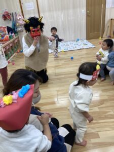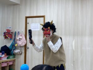 朝の会で『豆まき』のお歌を歌いました😊