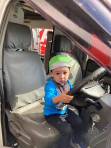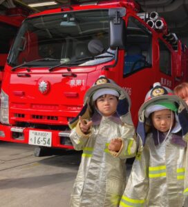 少し緊張気味の園児さんでしたが、消防服も着させて頂きポーズ✌