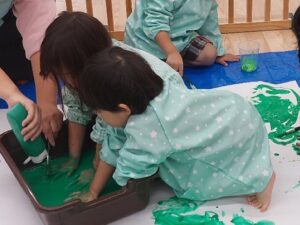 ぶどう組🍇さん、この日は室内で絵の具遊び✨
