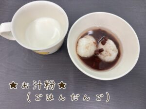 ごはんをお餅に見立て小さい子でも食べやすくしたお汁粉です☺️