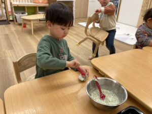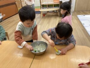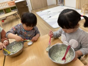 ほうれん草のカップケーキをみんなで作りました😉
