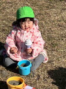 走った後はちょっと休憩、お砂でまったりとおままごと😊