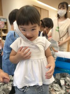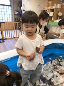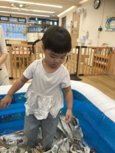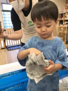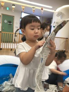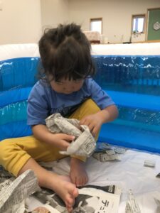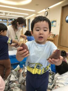 新聞紙の中からさつまいもを探し出します!!👀