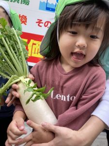 まずはぶどう組さんが市場に大根を買いに行ってくれました。