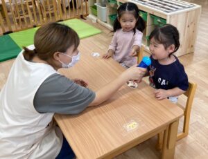 朝の会でのぶどう組さんのかわいいひとコマをお届けして