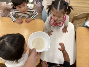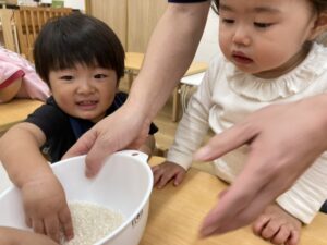 ぶどう組さんはお米研ぎも手伝ってみました!