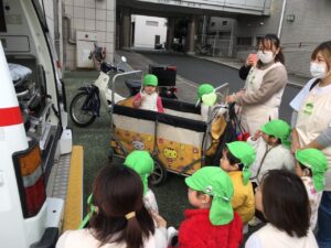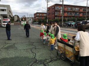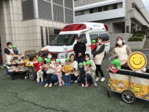 今日はお天気もいいのでいちご組さんとれもん組さんも一緒に泉消防署に向かいました😊