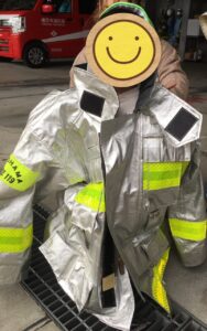 実際に着用している防火服🧑‍🚒なので重さに耐えながら頑張りました💦