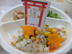 この日の給食は特別メニュー!調理さんが特別に🏁まで用意してくれました☺