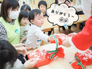 それでは、サンタさんに緊張しながらも嬉しそうにプレゼントを受け取る園児たちの様子をご覧ください( *´艸`)💕