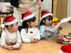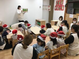 まず始めにクリスマスの紙芝居を読んでもらい、クリスマスソングを歌いました🎶