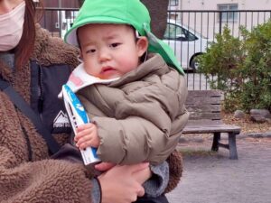 公園に到着しました😊今日はパパやママと一緒に遊びます✨✨