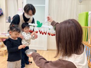 先生手作りの😉いちご狩りをしよう👏みんなでいちご狩りをすることに🍓🍃