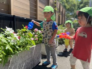 ぴーまん保育園では水分補給や休息をこまめに取り過ごしています。