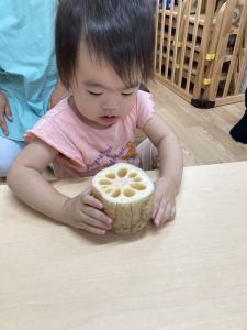 野菜の断面を見て、どんなスタンプになるか、みんなで考えながら楽しみました!!