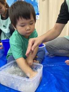 その後は粉末かんてんを溶かして固めたものを皆で触ってみることに🤲