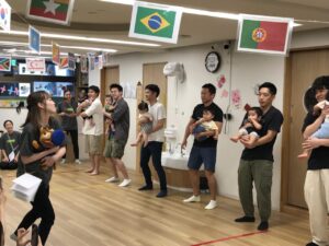 パパ達がお子さんを抱っこして『おやこたいそう』を行いました!!