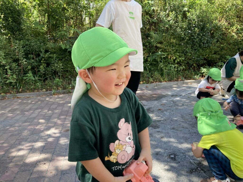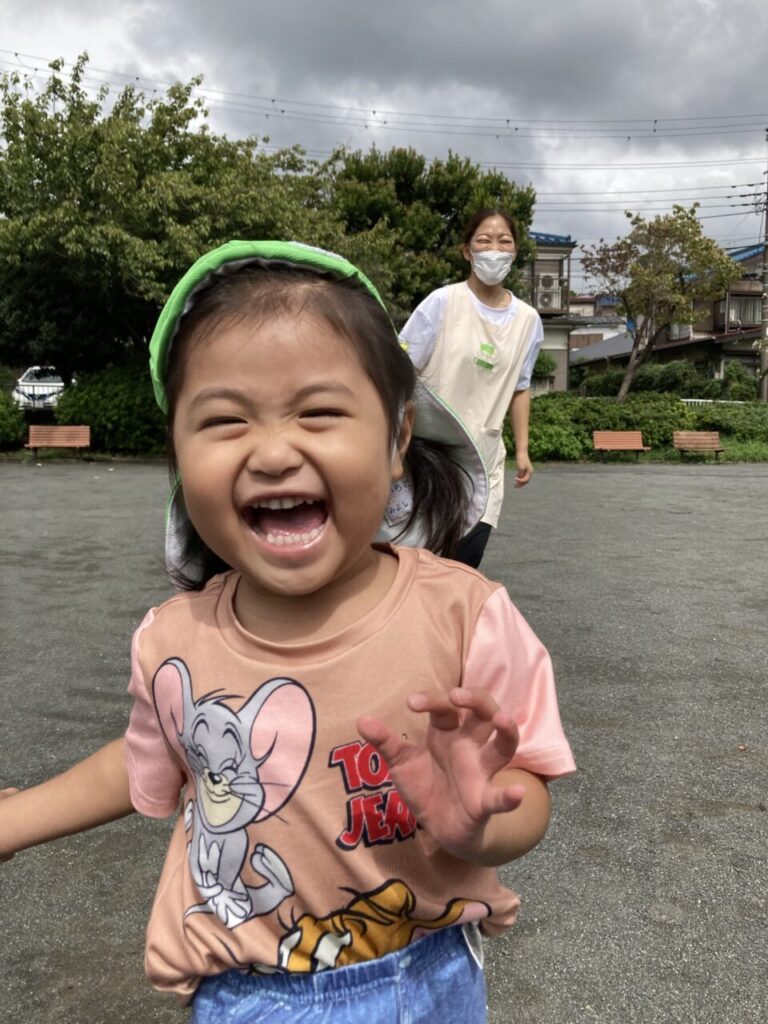 ようやく秋らしいさわやかな天気になってきましたね。みんなで公園にお散歩に行ける日も増えてきました。暑さが厳しくてなかなか外遊びができなかったので、公園内を思いっきり走り回って、いっぱい身体を動かせられるようになってうれしいね!