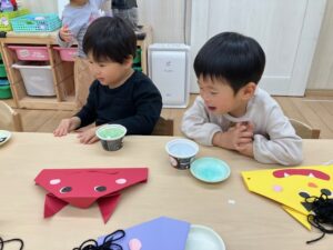 いちご組🍓さん(1歳児)も豆まきの準備をします🌟