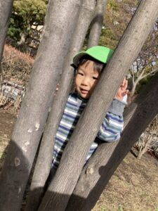 お友だちとジャングルジムの下で電車ごっこ🚃💓