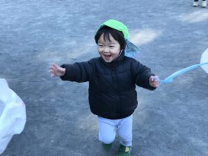 自分で作った凧を嬉しそうにあげている子どもたちでした(❁´◡`❁)