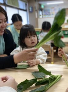 食育ではこまつなとほうれん草の違いについて