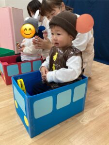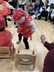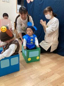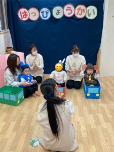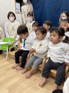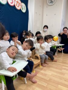 「〇〇くーん!」とお名前を呼ばれたお友だちから前に出てきてもらい、自分のお椅子に座ってもらいました✨