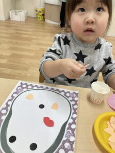 今年の保育園はお正月らしく、福笑い遊びから始まりました🎵