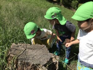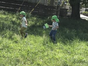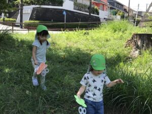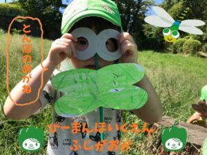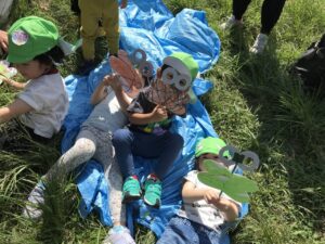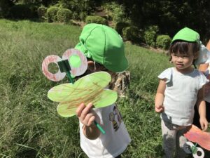 ぶどう組さんは、製作で作ったトンボのメガネを持って、公園で自然観察を楽しみました🔍