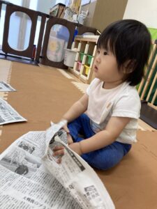 新聞紙びりびり~~!