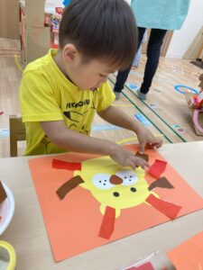 ちぎってのりをつけて貼って、素敵なお顔が完成💕