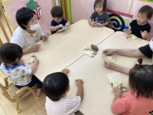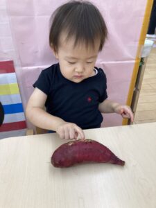 まず第一弾のこちらは、今月の食育の『さつまいも🍠』の様子をどうぞ!