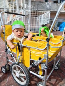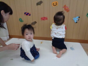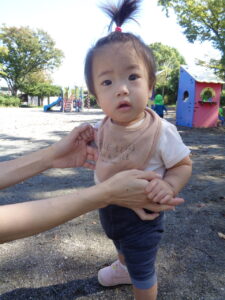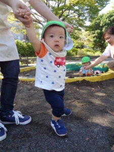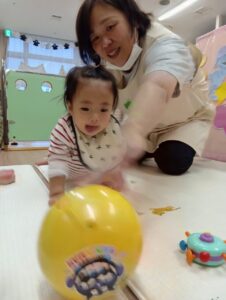 手を繋いで歩いてみたり、足踏みをして感覚を楽しんでいますよ🌈😆