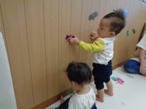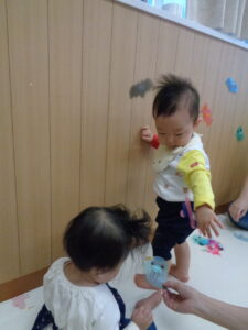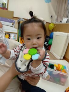 なんだろう?いろがついてるねなどとお話をしているのかな🥰