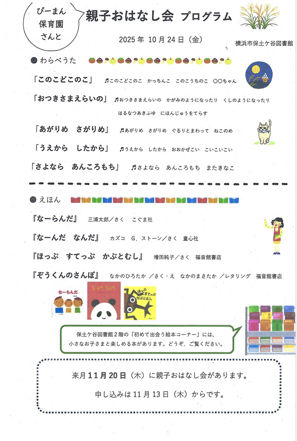 に行った親子行事、保土ヶ谷図書館での『おはなし会』の様子をご覧ください😊