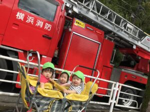 先日、近くの公園にお散歩に行ったら皆大好き消防車が🚒!!!