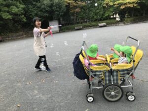 その後は公園に移動してシャボン玉で遊んで.。o○