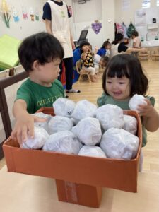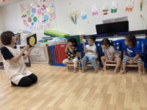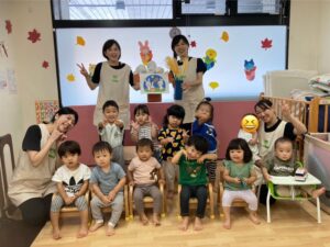 真剣な表情で紙芝居を見たり、ゲームではしゃいでいる様子をご覧ください🎵