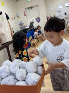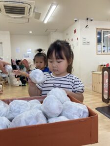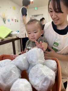 紙芝居を見ながら、お月様やお団子、うさぎさんのお話を聞きました🐰