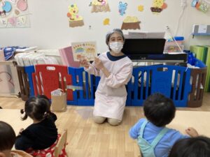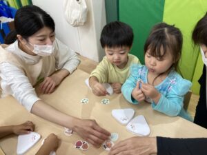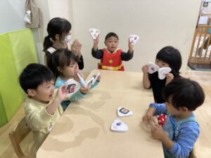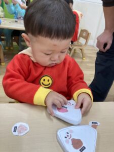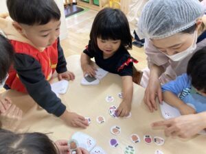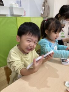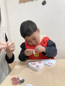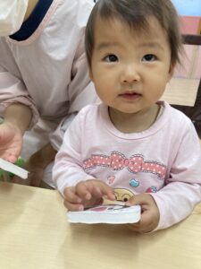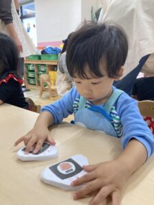 食べたい具が決まったら、先生にシールの紙を剥がしてもらおうね🤭