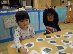ぶどう組さんは、おにぎりのカードで遊びます。