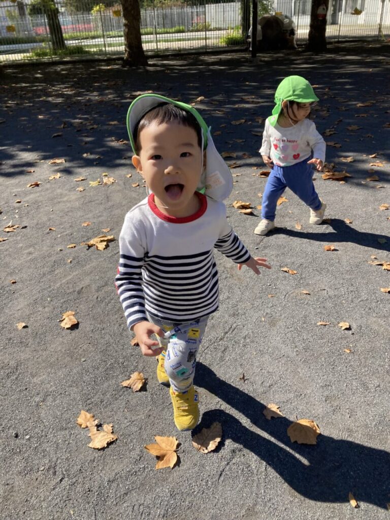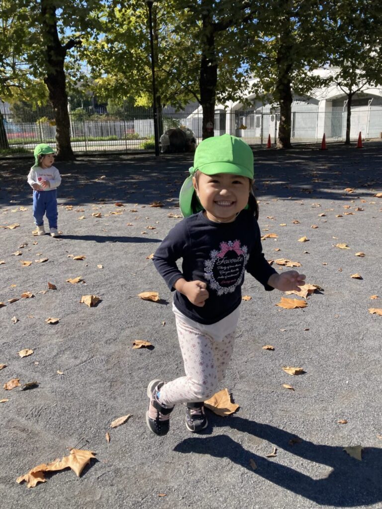 公園に無事到着!!落ち葉の上でのかけっこも楽しいね🌈